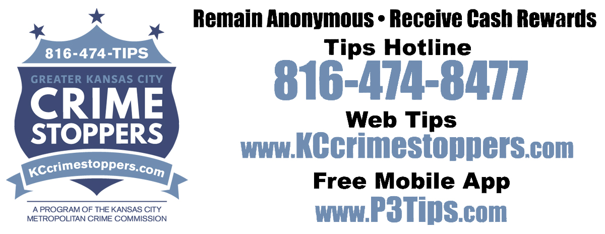 Anyone with information is urged to contact Crime Stoppers Greater Kansas City TIPS Hotline at 816-474-TIPS (8477), TIPS may also be submitted electronically at KCcrimestoppers.com, or via our P3Tips mobile ap. Information leading to an arrest or filing of charges in the case could be eligible for up to $1,500.00 in reward money.